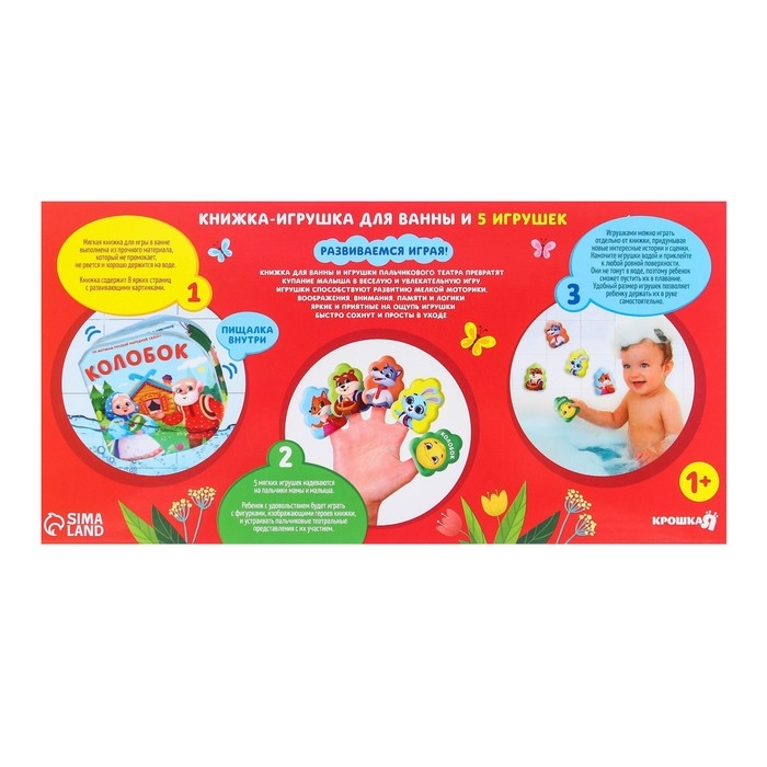Игрушки для ванны по мотивам сказки «Колобок» книжка и пальчиковый театр, Крошка Я