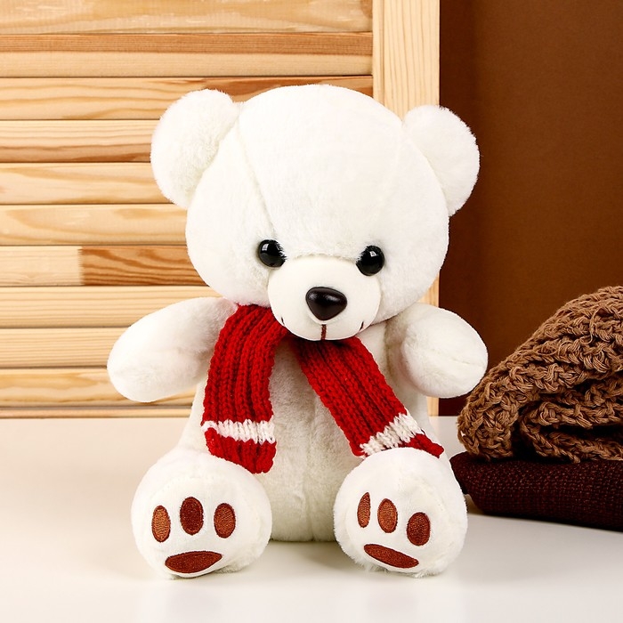 Мягкая игрушка «Мишка в шарфе», 24 см, цвет белый
