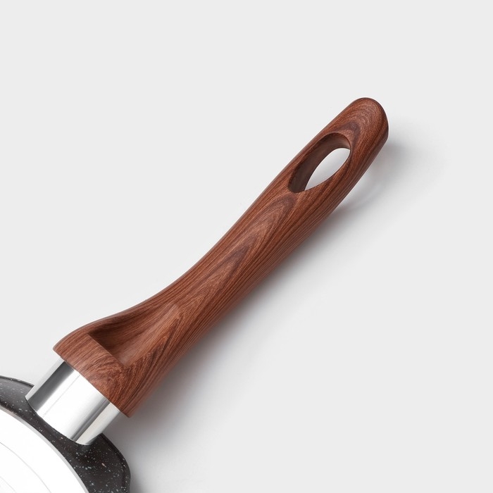 Сковорода Magistro серии Granit изготовлена из кованого алюминия и имеет сверхпрочное антипригарное покрытие, усиленное частичками мрамора. Покрытие полностью безопасно для здоровья, не содержит PFOA и других вредных веществ. В такой сковороде удобно жарить блины, оладьи, панкейки. Благодаря надежному антипригарному покрытию на сковороде можно готовить с минимальным количеством масла: продукты не прилипнут, не подгорят.