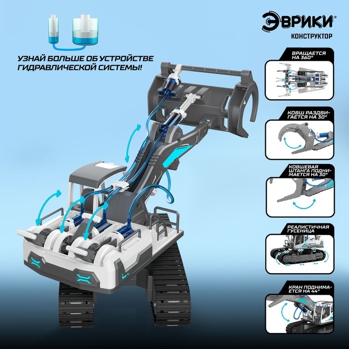 С конструктором 6 в 1 «Гидравлическая техника» ребёнок соберёт модели спецтехники, которые управляются с помощью гидравлической системы. Набор познакомит юного изобретателя с основами гидравлики и механики — наук, которые изучают передачу силы жидкостью и движение тел и их взаимодействие между собой!