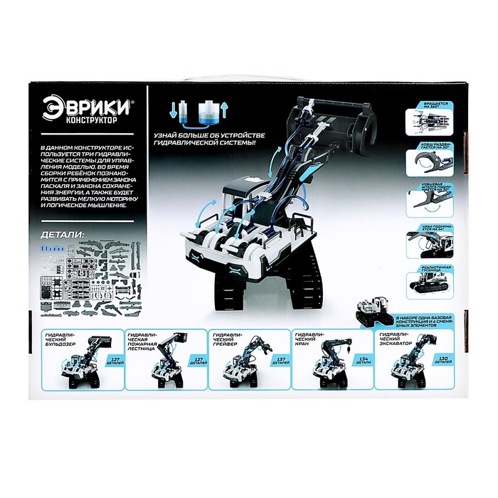 - Предусмотрено 5 вариантов моделей для сборки, каждая из которых показывает, как работает гидравлика и механика в разных ситуациях.