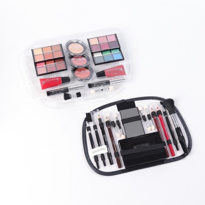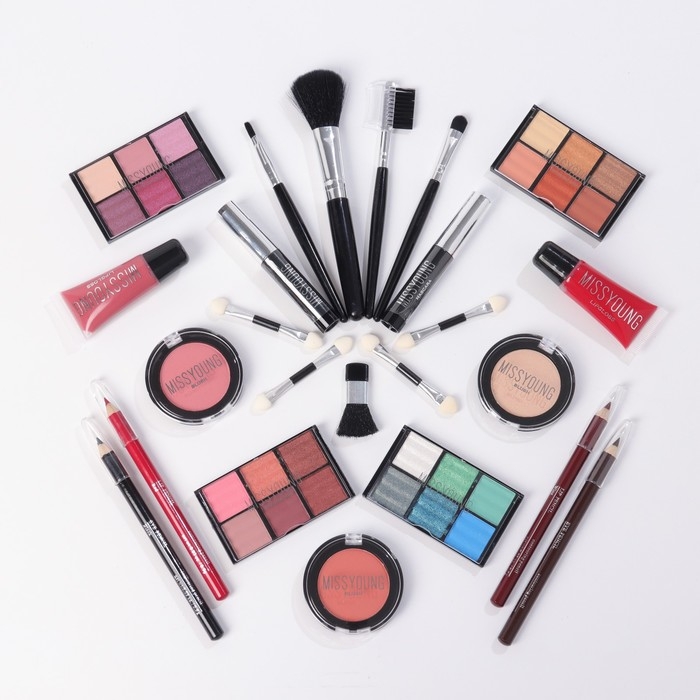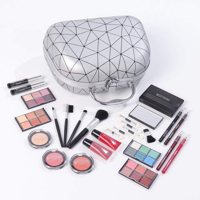 Подарочный набор косметики не включает в себя деликатные и строго индивидуальные аксессуары типа тональных кремов, хайлайтеров , жидких бровей и накладных ресниц.