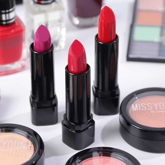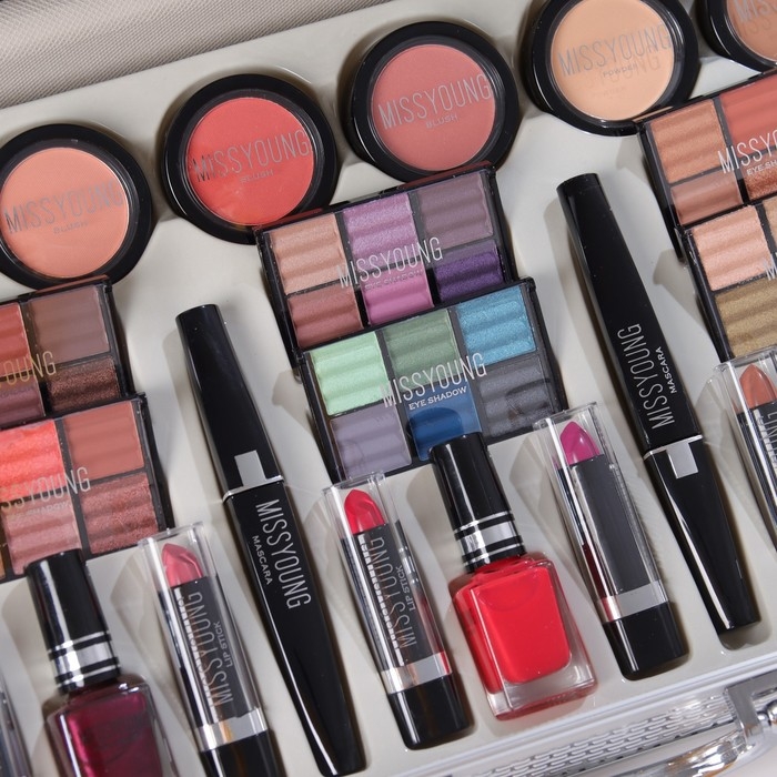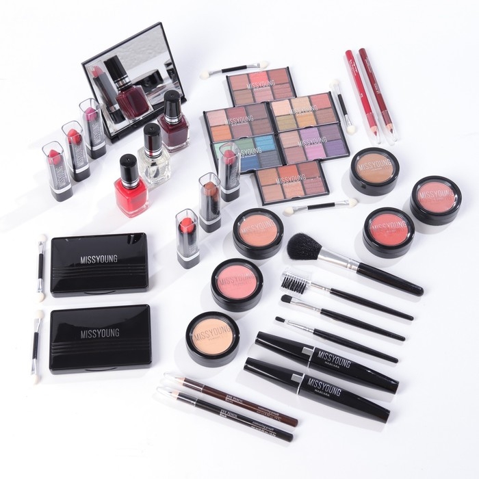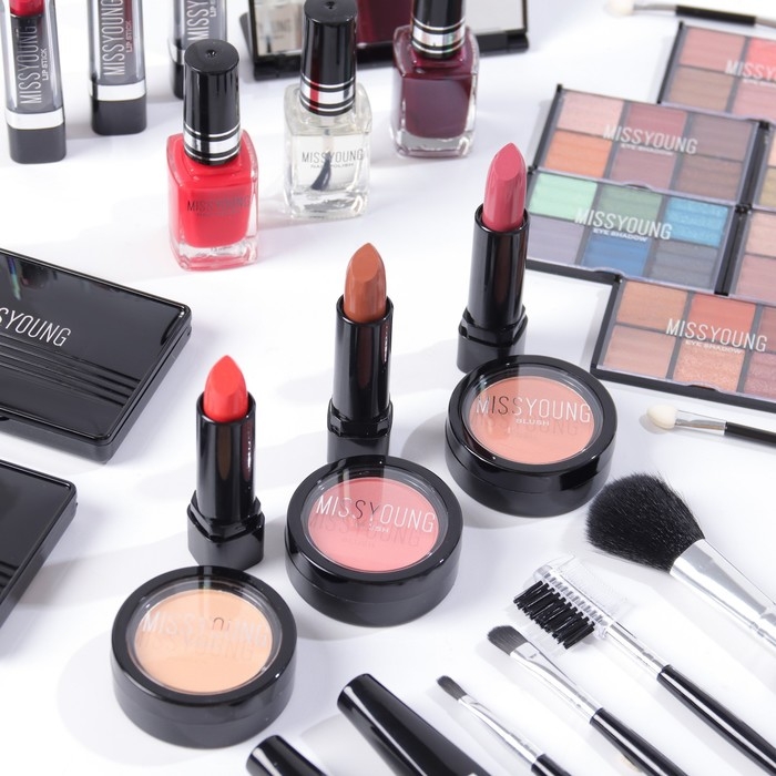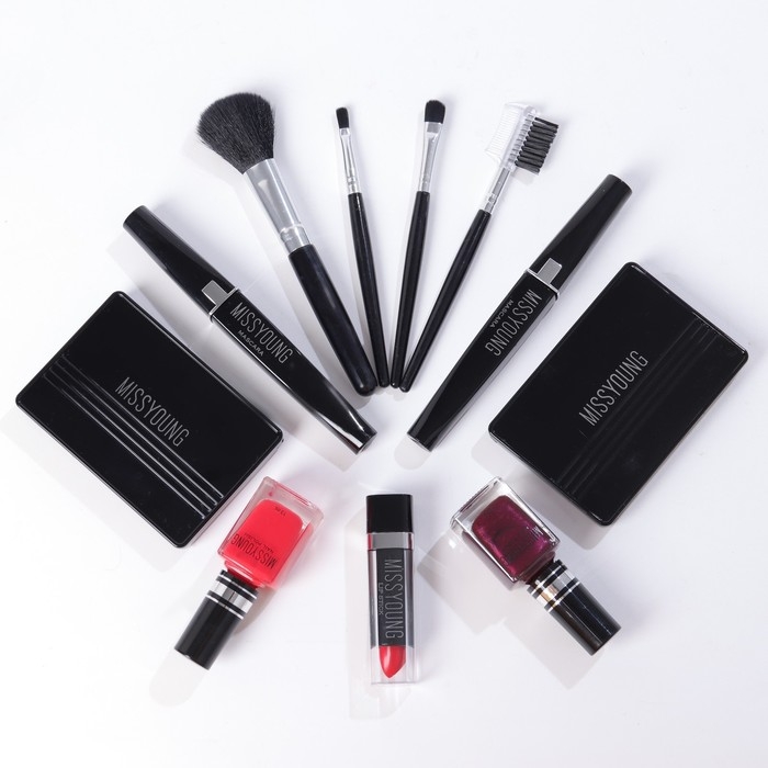 Подарочный набор косметики не включает в себя деликатные и строго индивидуальные аксессуары типа тональных кремов, хайлайтеров , жидких бровей и накладных ресниц.