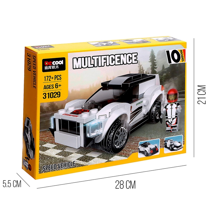 Конструктор блочный «Спорткар», 10 вариантов сборки, 172 детали