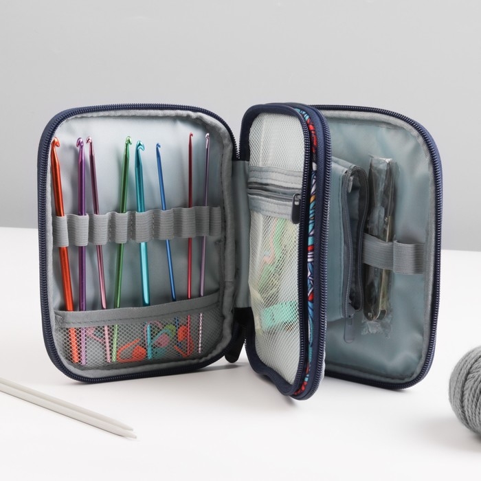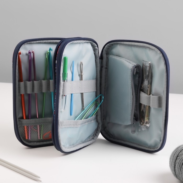 Пенал для вязания — это компактный и удобный органайзер, предназначенный для хранения и транспортировки различных материалов и инструментов, необходимых для вязания. В нём вы можете легко разместить пряжу, спицы, крючки, наборы кнопок, бусин и другие аксессуары. Пенал имеет застёжку на молнии для надёжного закрытия. Такой органайзер помогает держать все необходимые материалы в порядке и под рукой, что делает процесс вязания более удобным и приятным.