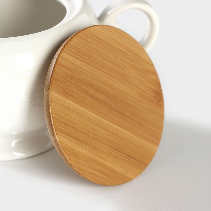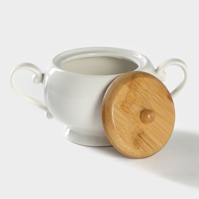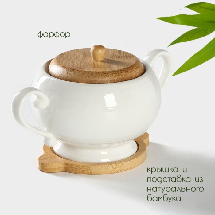 Сахарница фарфоровая на бамбуковой подставке BellaTenero, 500 мл, цвет белый