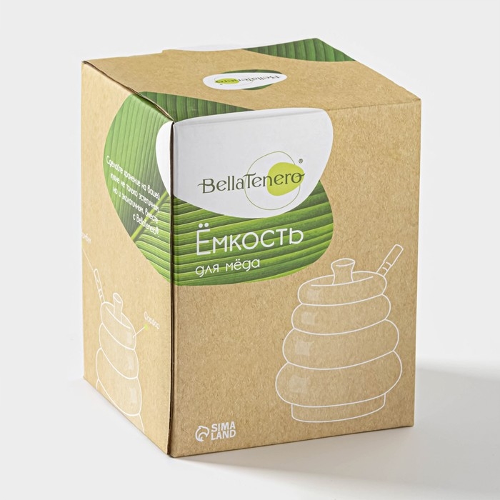 Банка для мёда BellaTenero «Бочонок» – удобный аксессуар, который станет оригинальным украшением в интерьере вашей кухни. В комплект входит удобная деревянная ложка. Правильный выбор тары для хранения мёда позволяет надолго сохранить ценные свойства продукта, чтобы его применение приносило только пользу организму человека. Фарфоровая посуда абсолютно нейтральна, потому длительное хранение мёда в такой посуде не только допустимо, но и желательно.