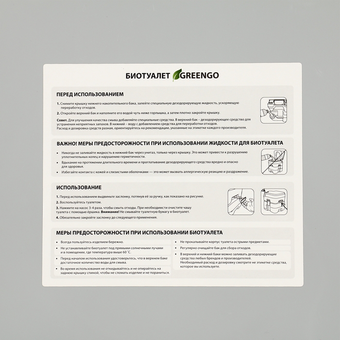 Биотуалет жидкостный, 20 л, съёмный бак, Greengo