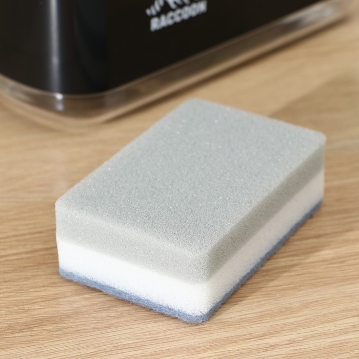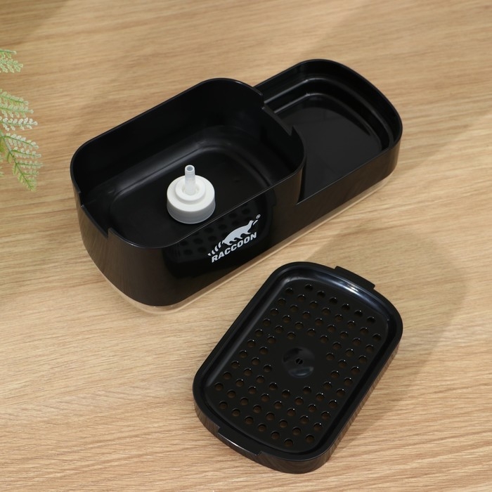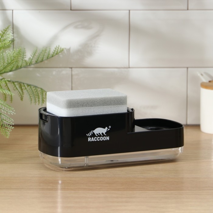 Дозатор для моющего средства с подставкой для губки Raccoon, 550 мл, губка в комплекте, цвет чёрный