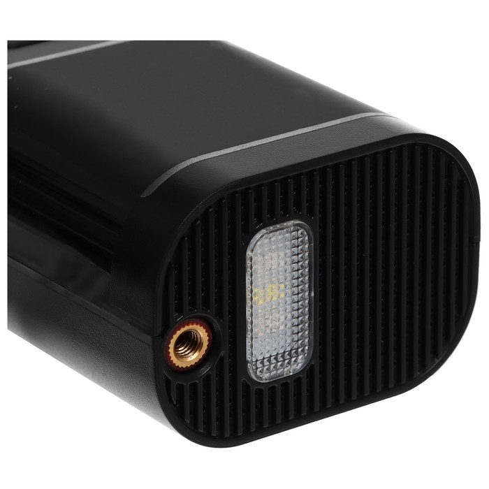 Электрический насос с манометром. Материал цилиндра — алюминий, корпус изготовлен из пластика. Лёгкий и компактный, не занимает много места, удобен в транспортировке. Работает от USB-кабеля. Имеется дисплей, на котором можно отследить заряд и давление в велосипедной камере. Встроенный фонарь обеспечивает комфорт при эксплуатации в тёмное время суток.