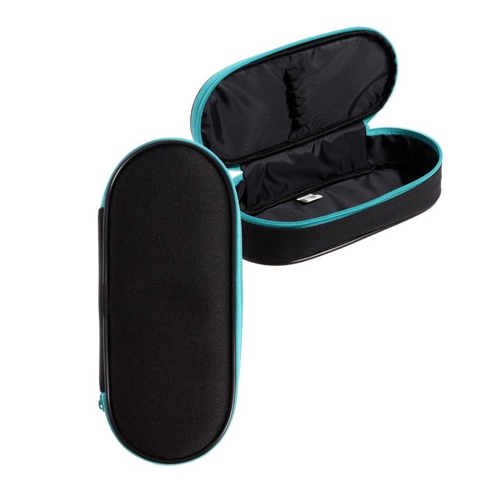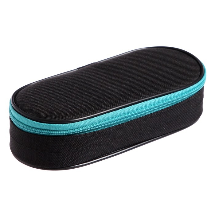 Пенал-футляр 95 х 205 х 45 мм, мягкий, текстильный, Calligrata, ПМК 27-20 Black, резинка на клапане, черный/бирюзовый