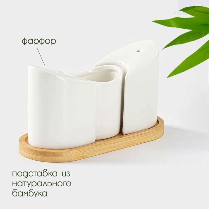 Набор фарфоровый для специй на подставке из бамбука BellaTenero «Эстет. Грани», 2 предмета: солонка 100 мл, перечница 100 мл, цвет белый