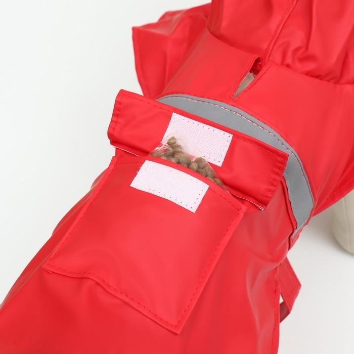 Отверстие в дождевике на спинке для быстрого пристегивания поводка, а кармашек поможет вашему питомцу всегда иметь при себе любимое лакомство!