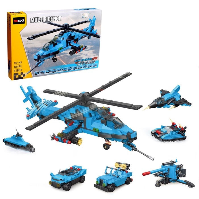 Конструктор блочный «Боевой вертолёт», 727 деталей