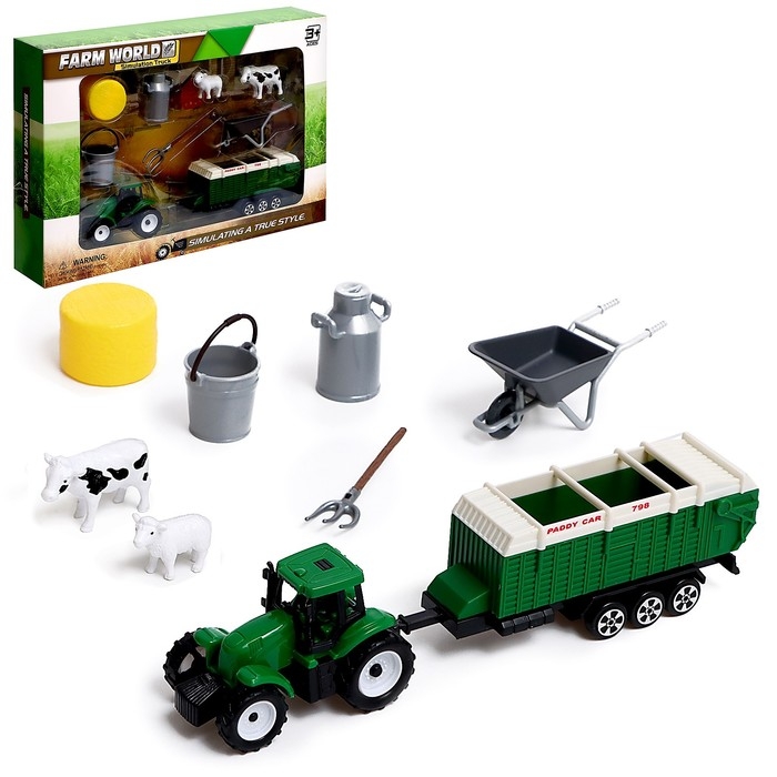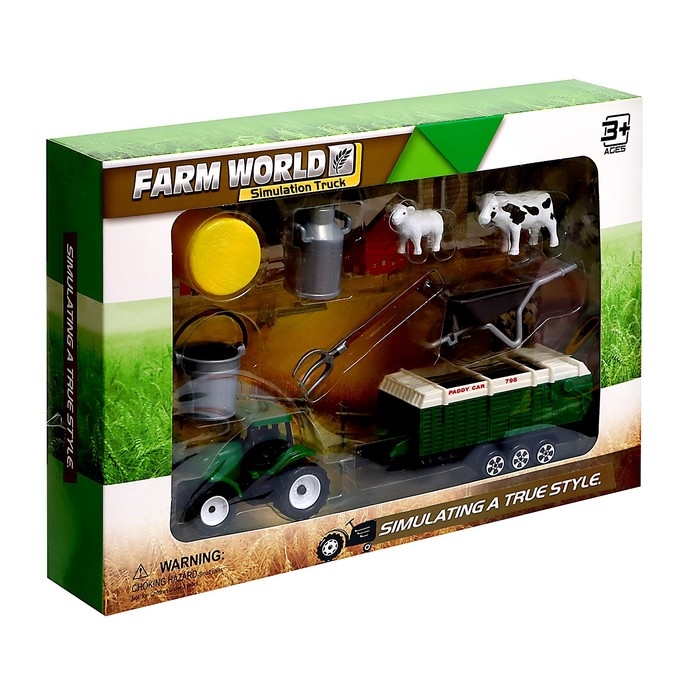 Игровой набор «Ферма» познакомит ребёнка с сельским хозяйством. Набор включает в себя трактор с прицепом, загон для животных и игровые аксессуары.