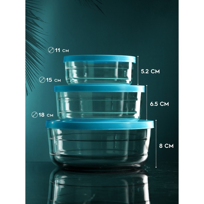 Набор контейнеров «Дена», 1500 мл, 800 мл, 400 мл, стекло, Иран