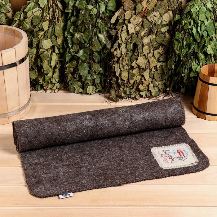 Лежак для бани темный с вышивкой "С легким паром" 150х50 см