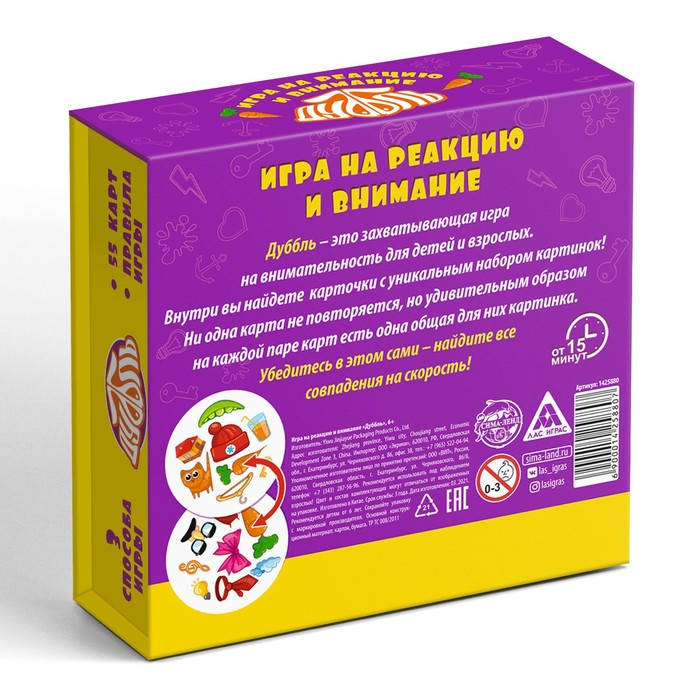 Настольная игра на реакцию и внимание «Дуббль.» в подарочной коробке на магнитах, 55 карты, 6+