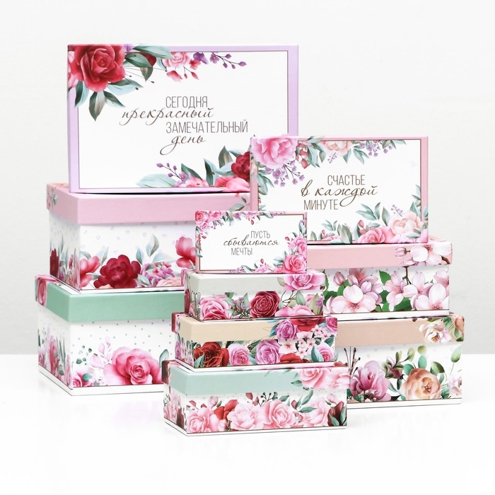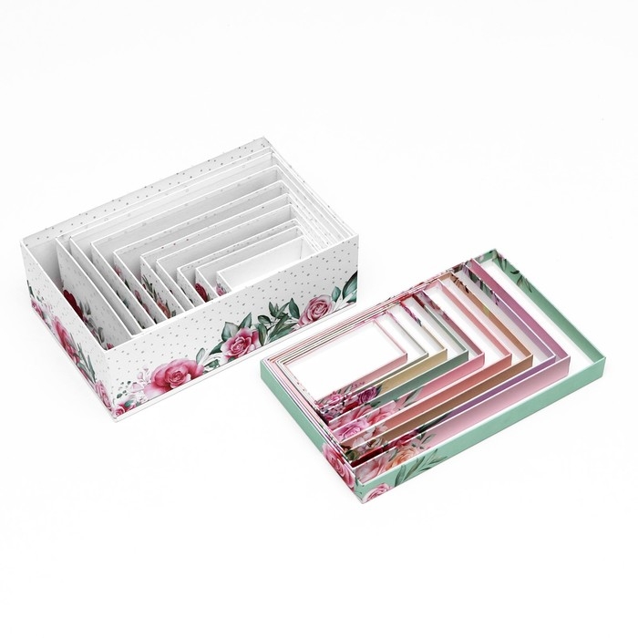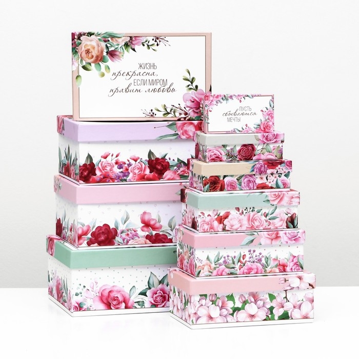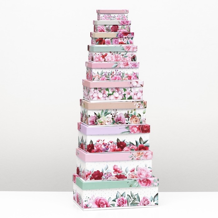 Набор коробок прямоугольных 10 в 1 "Цветочный",30 х 19 х 11 - 12 х 6,5 х 4 см