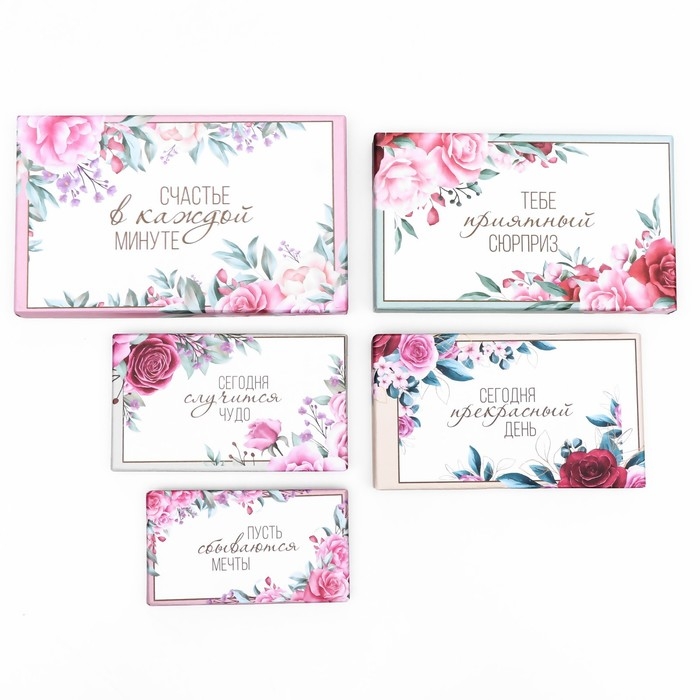 Набор шляпных коробок 5 в 1" Нежность" , 23 х23 - 15 х 15 см