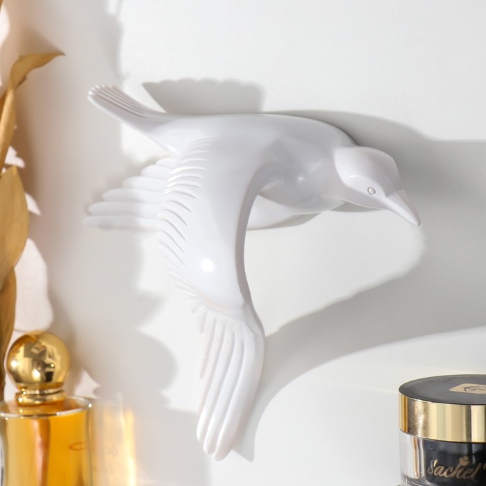 Сувенир полистоун настенный декор "Чайка, крылья вниз" белый 17,5х20 см
