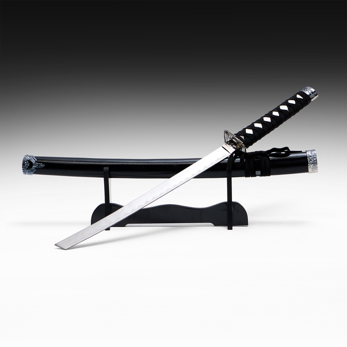 Сувенирное оружие "Катана Нао" 77см, чёрный глянец, на подставке