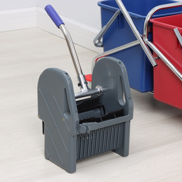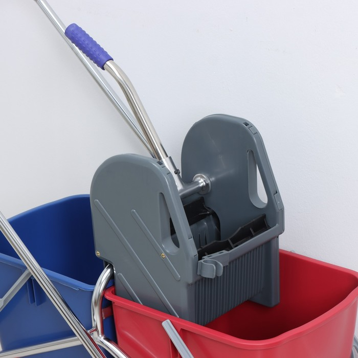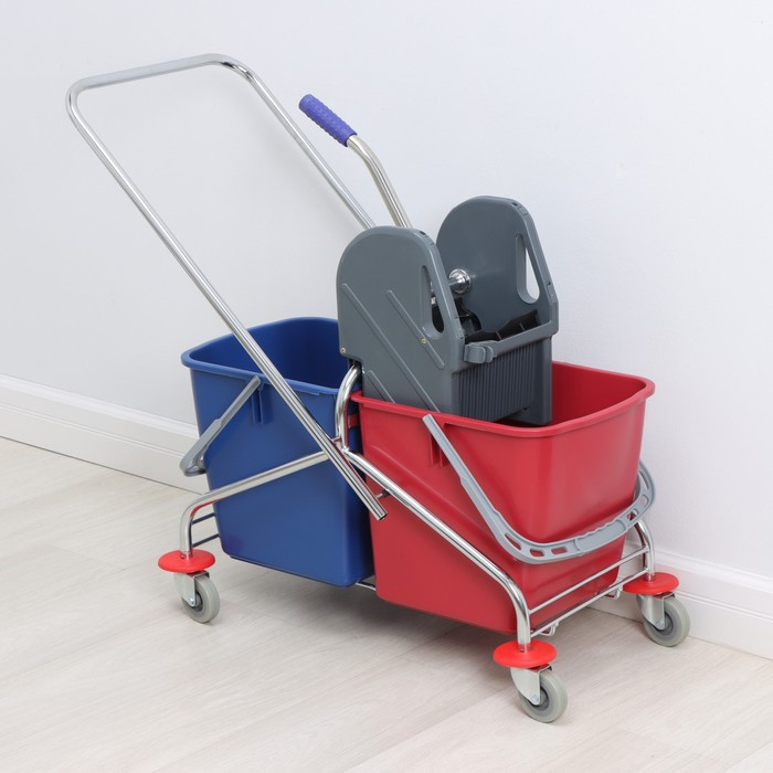 Тележка уборочная двухведерная, с отжимом 46 л, хромированная рама