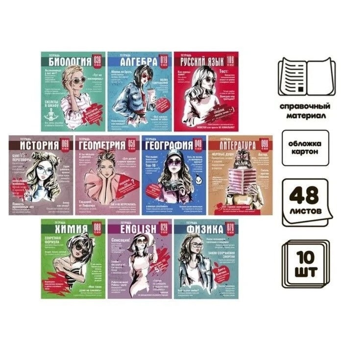 Комплект предметных тетрадей Calligata TOP "Журнал", 48 листов, 10 предметов, со справочным материалом, обложка мелованный картон, глянцевая ламинация, блок офсет
