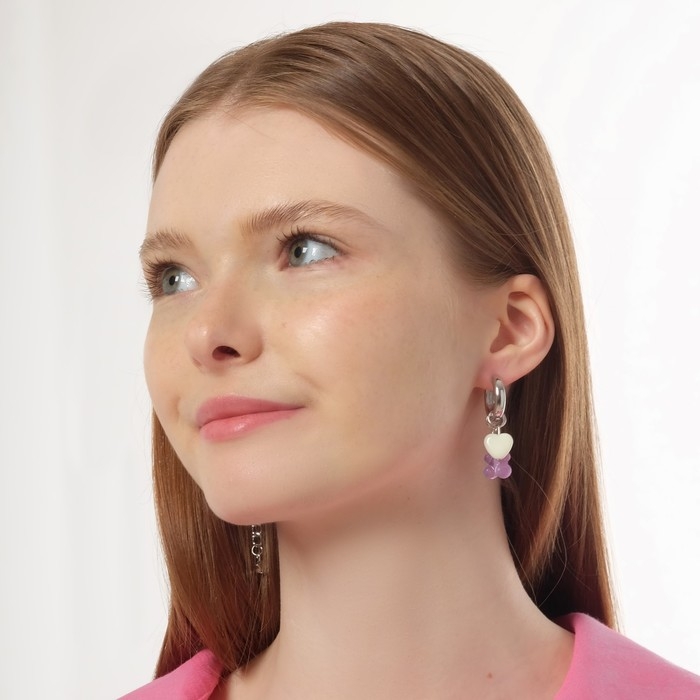 Серьги со съёмным элементом «Трансформер» мишка и сердце, цветные в серебре