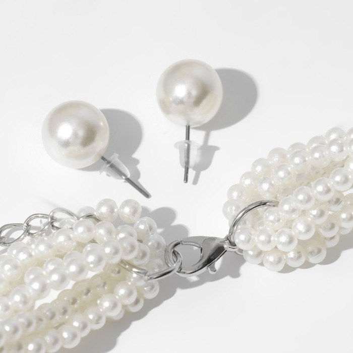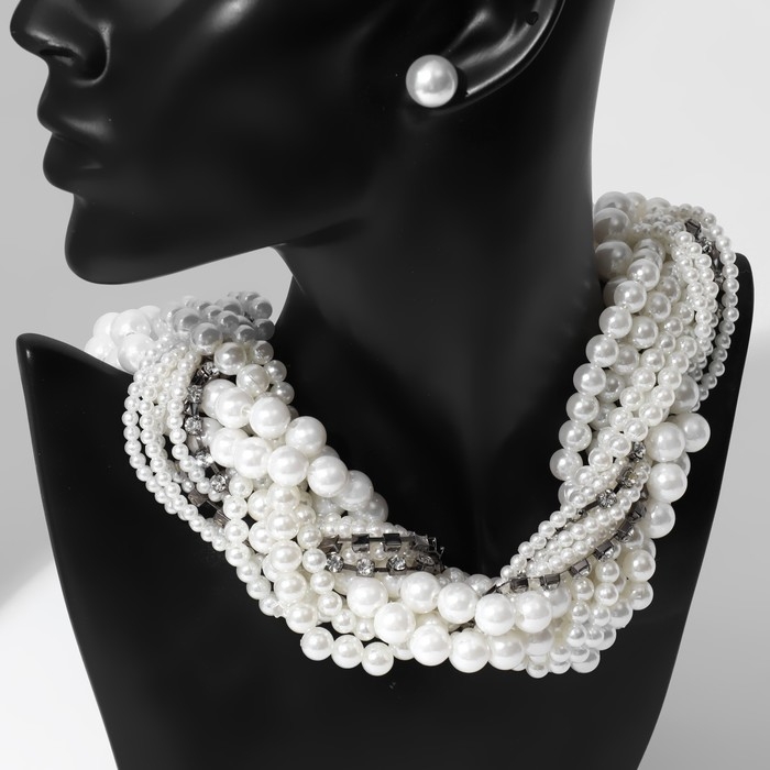 Набор 2 предмета: серьги, бусы «Жемчужный со стразами», цвет белый, 40см