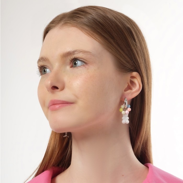 Серьги со съёмным элементом «Трансформер» мишка и собачка, цветные в серебре