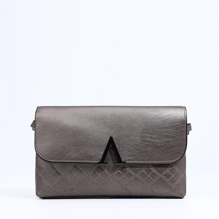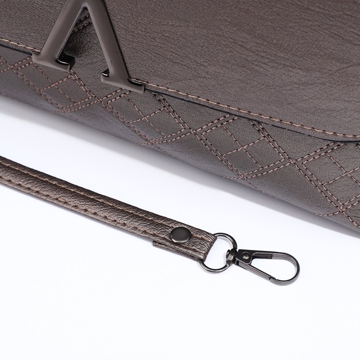 Сумка-клатч на магните, длинный ремень, цвет бронзовый