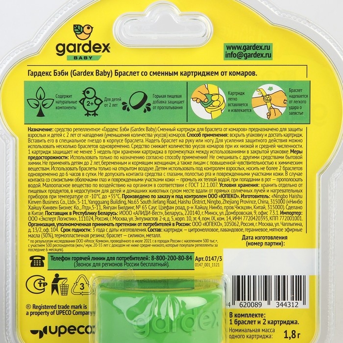 Браслет от комаров "Gardex Baby", с 2 сменными картриджами