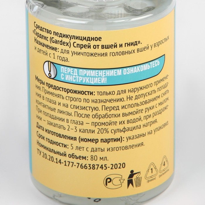 Спрей от вшей и гнид Gardex, средство педикулицидное, 80 мл