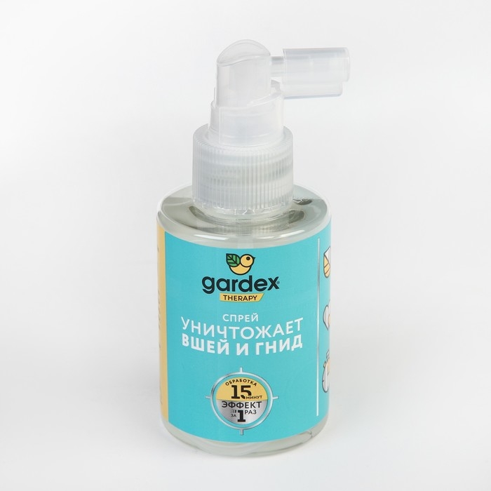 Спрей от вшей и гнид Gardex оказывает губительное действие на вшей и гнид. После нанесения спрея на кожу и волосы начинает работать входящий в состав диметикон, который известен своими обволакивающими свойствами.