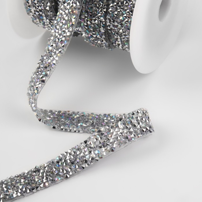 Стразы термоклеевые «Ромбы», ширина - 7 мм, 4,5 ± 0,5 м, цвет серебряный
