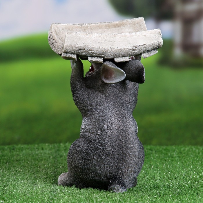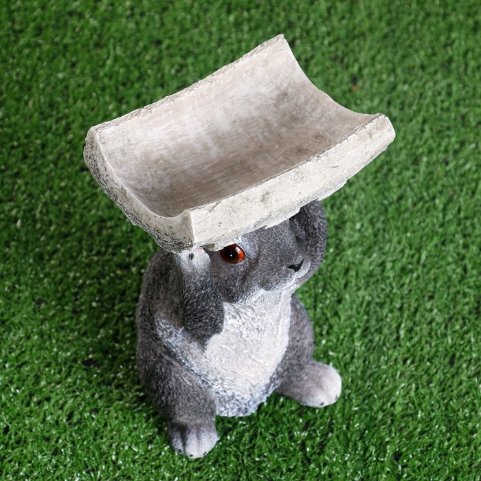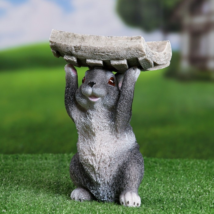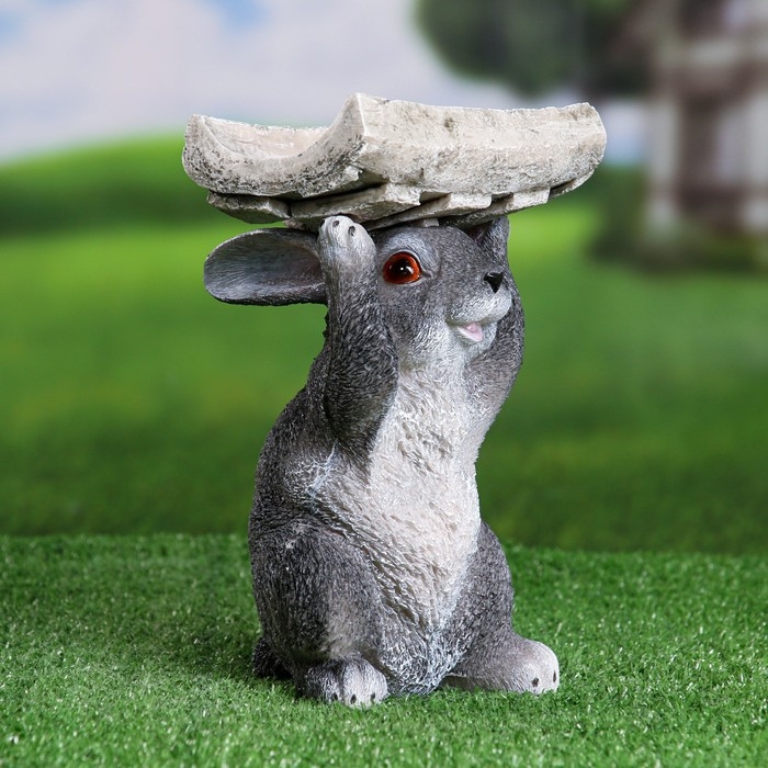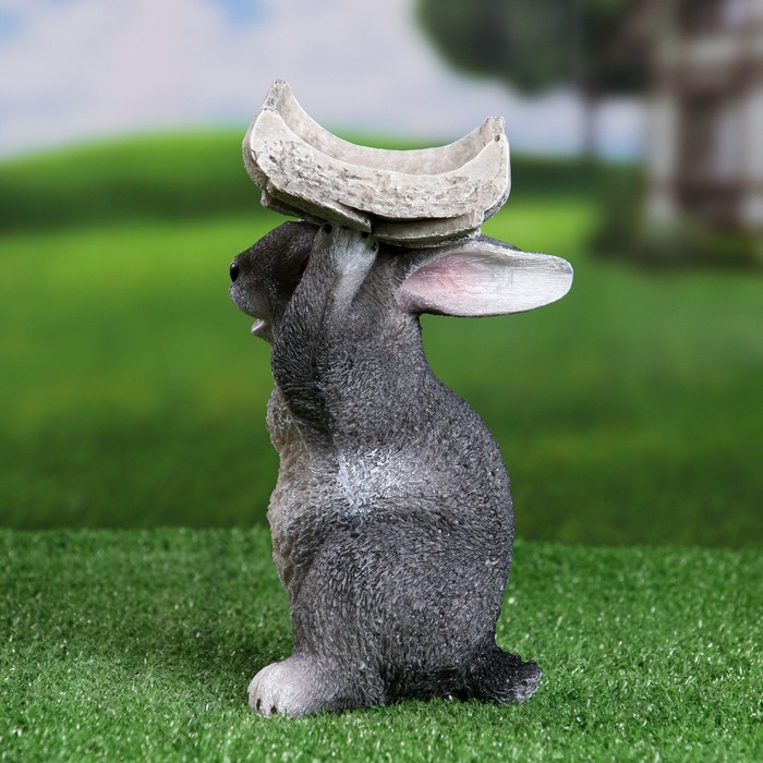 Садовая фигура "Серый заяц с кормушкой на голове" 15х13х24см
