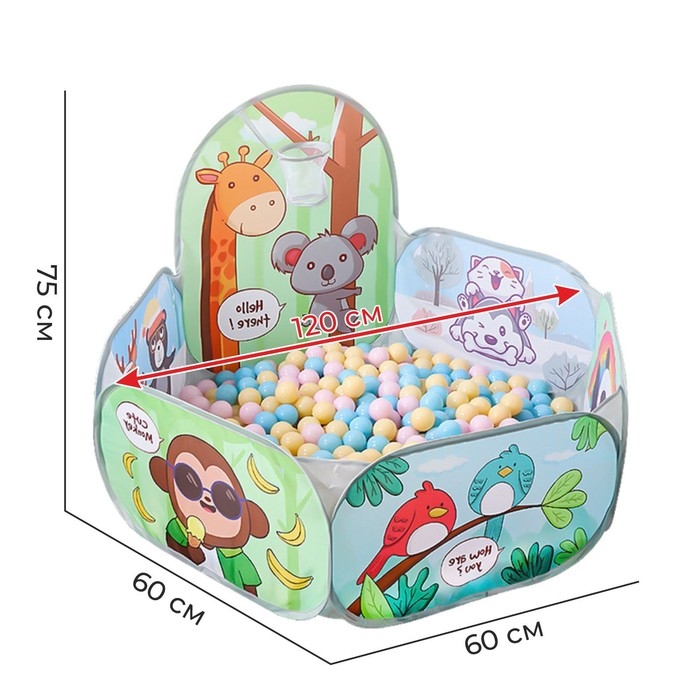 Палатка детская игровая - сухой бассейн для шариков «Животный мир» без шариков, 120 × 75 × 60 см