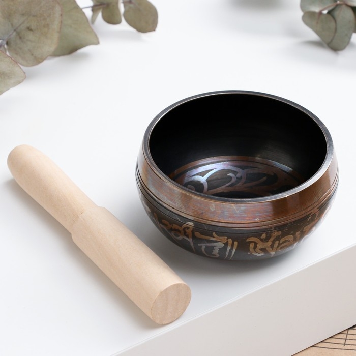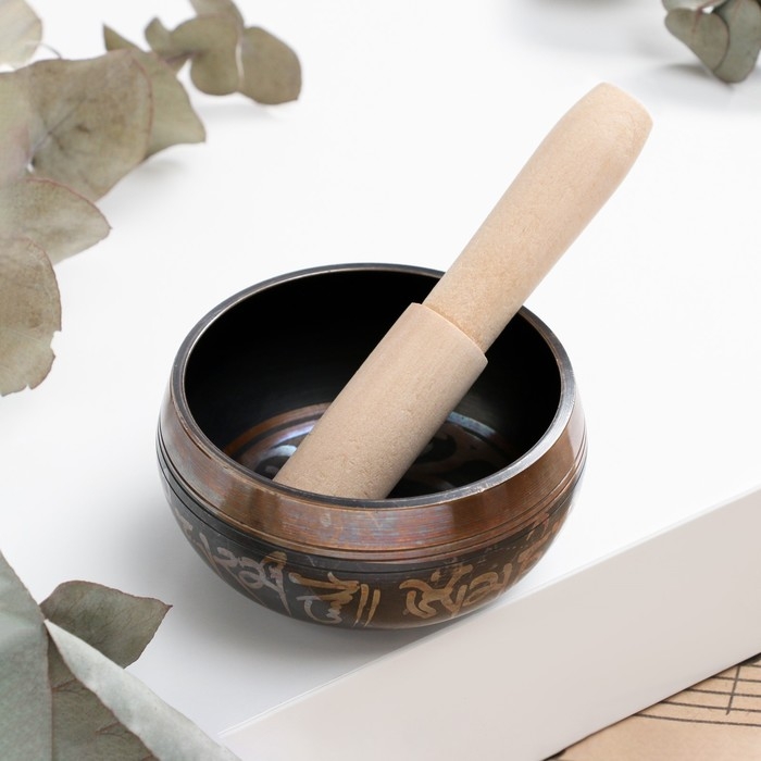 Музыкальный инструмент поющая чаша Music Life, черная с узорами, 8 см
