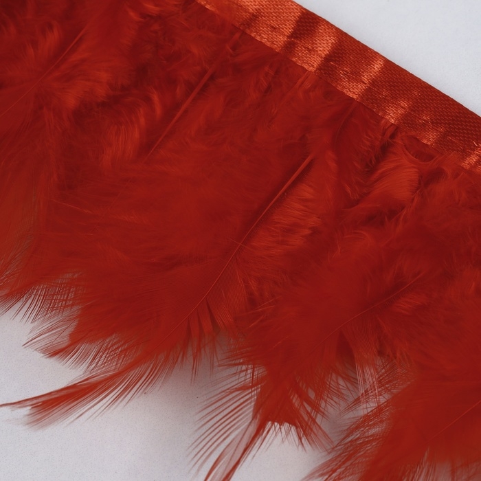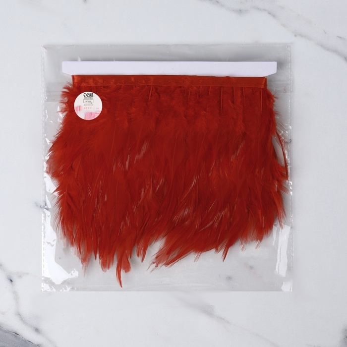 Тесьма с перьями петуха, 10-15 см, 5 ± 0,5 м, цвет красный