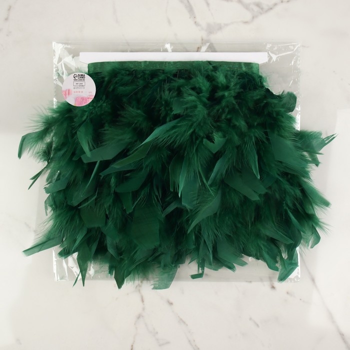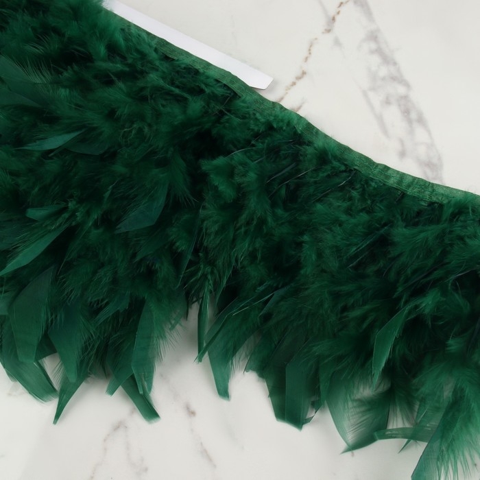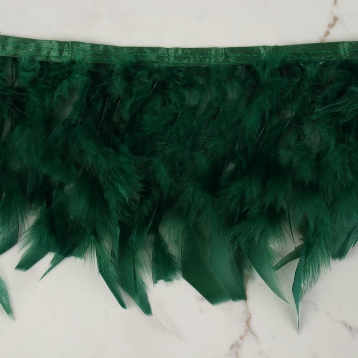 Тесьма с перьями индюка, 13-17 см, 5 ± 0,5 м, цвет изумрудный