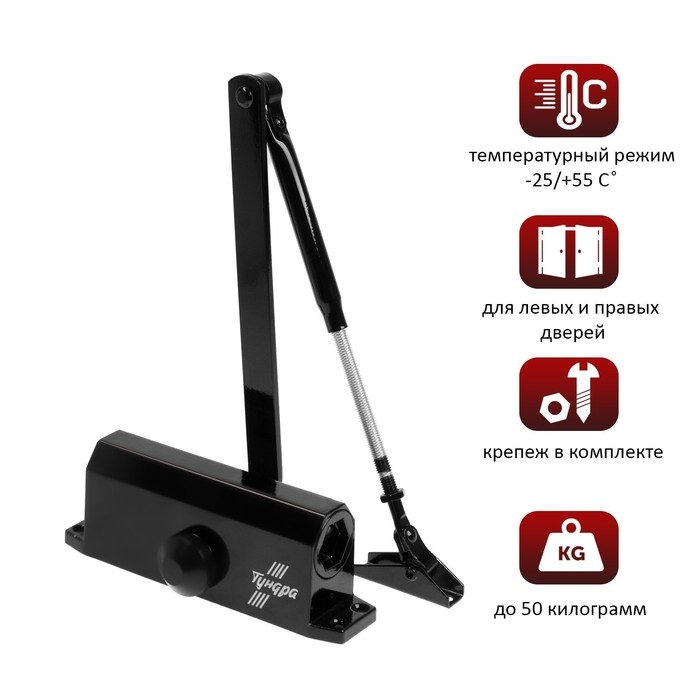 Доводчик дверной ТУНДРА D60BL, от 35-50 кг, черный