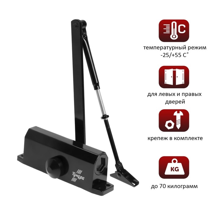 Доводчик дверной ТУНДРА D70BL, до 70 кг, черный