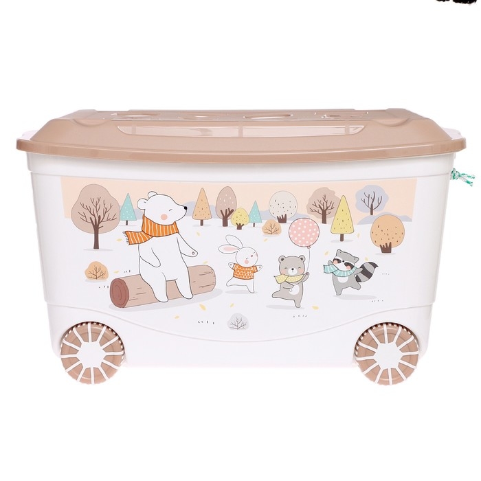Ящик для игрушек «Зверушки на опушке», на колёсах, с декором, 580 × 390 × 335 мм