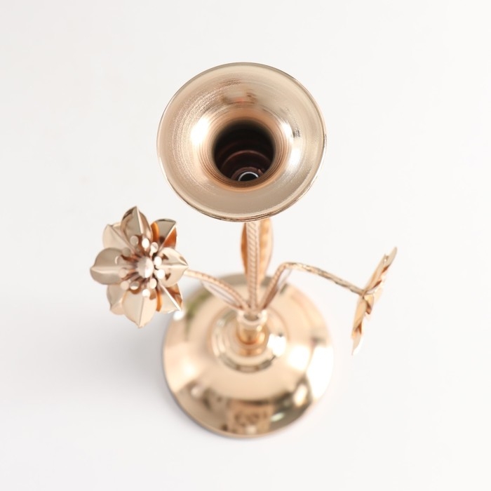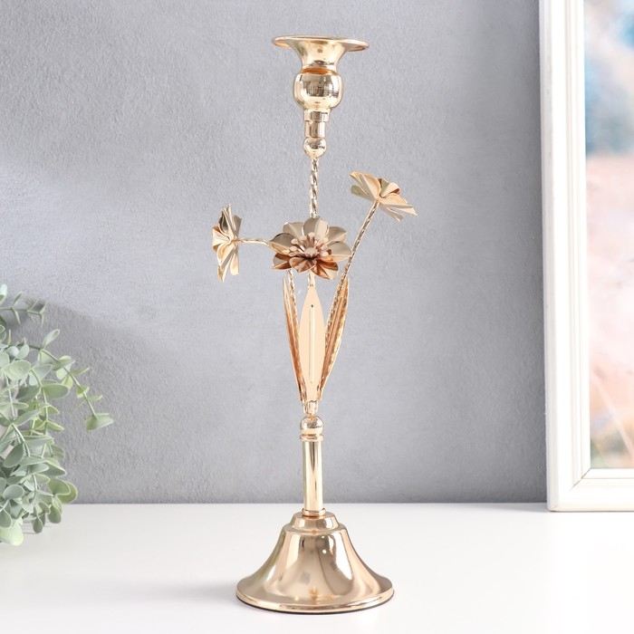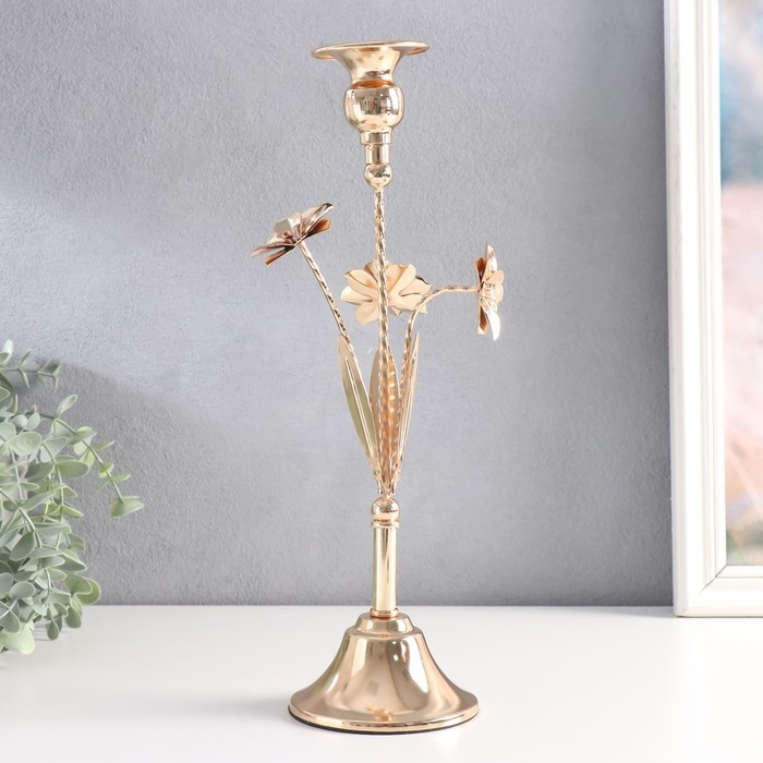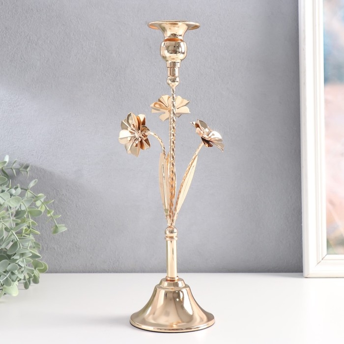 Подсвечник металл на 1 свечу "Три цветка" d-2,5 см золото 10х10х33 см