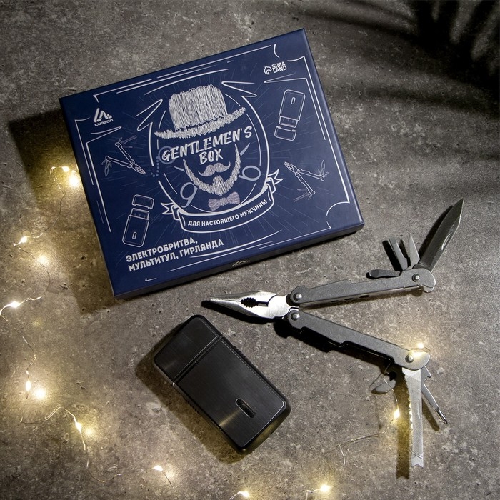 Подарочный набор Luazon, электробритва LBR-13, мультитул в чехле, гирлянда