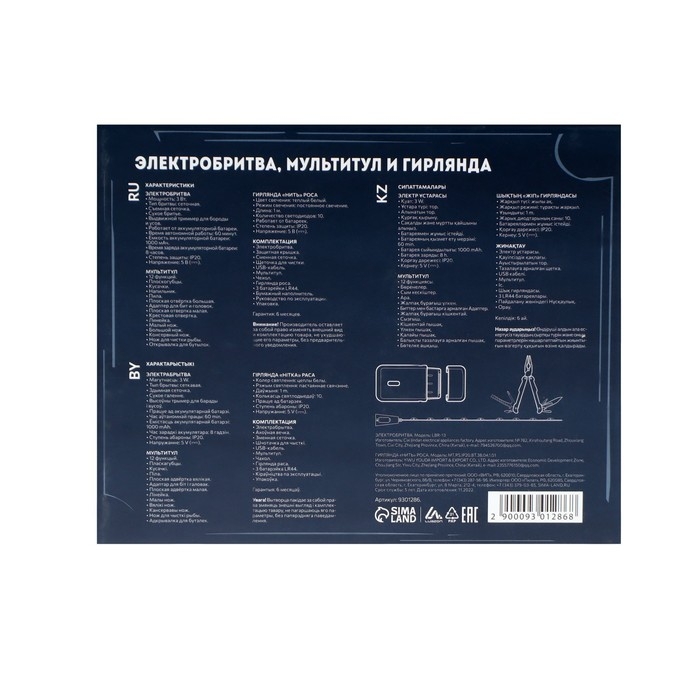 Набор от Luazon станет приятным и практичным подарком на День Рождения, Новый Год, годовщину или любой другой праздник для мужчины. В BOX входят электробритва, мультитул в чехле и гирлянда.