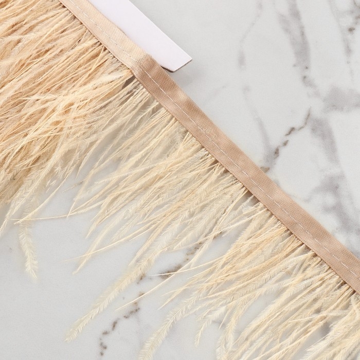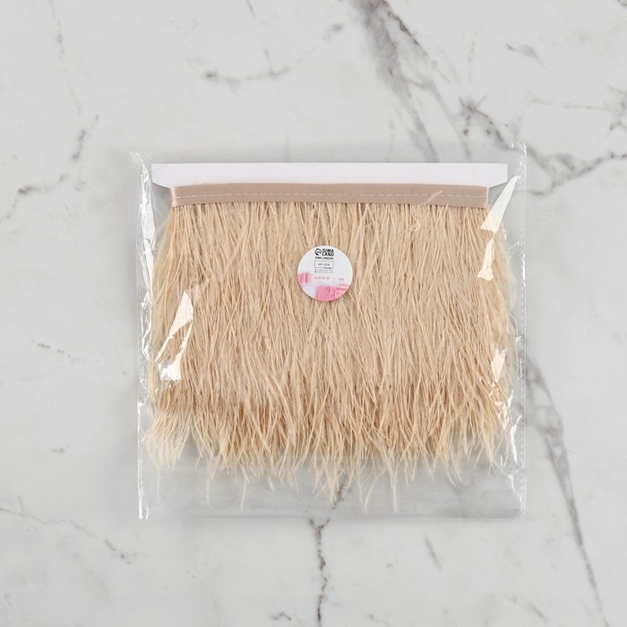 Тесьма с перьями страуса, 8-10 см, 5 ± 0,5 м, цвет слоновая кость