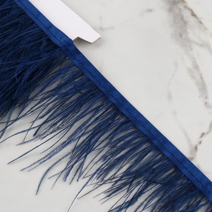 Тесьма с перьями страуса, 8-10 см, 5 ± 0,5 м, цвет тёмно-синий