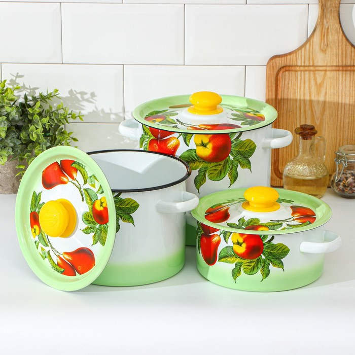 Набор кастрюль «Дары лета», 3 предмета: 2 л, 3,5 л, 5,5 л, индукция